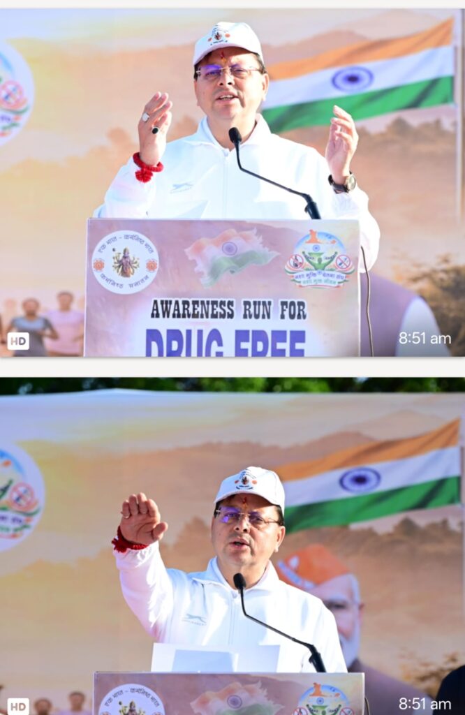 एमबी इंटर कॉलेज मैदान से रैली को हरी झंडी दिखाकर रवाना करने से पहले मुख्यमंत्री धामी ने कहा कि आज की यह दौड़ मात्र शारीरिक व्यायाम नहीं है, बल्कि एक स्वस्थ, समृद्ध और नशे से मुक्त उत्तराखंड के संकल्प की दौड़ है। जब आप सभी यहां से कदम आगे बढ़ाएंगे, तो यह संदेश पूरे प्रदेश में जाना चाहिए कि उत्तराखंड का युवा अब नशे को ‘ना’ कह रहा है और जीवन को ‘हाँ’ कह रहा है।